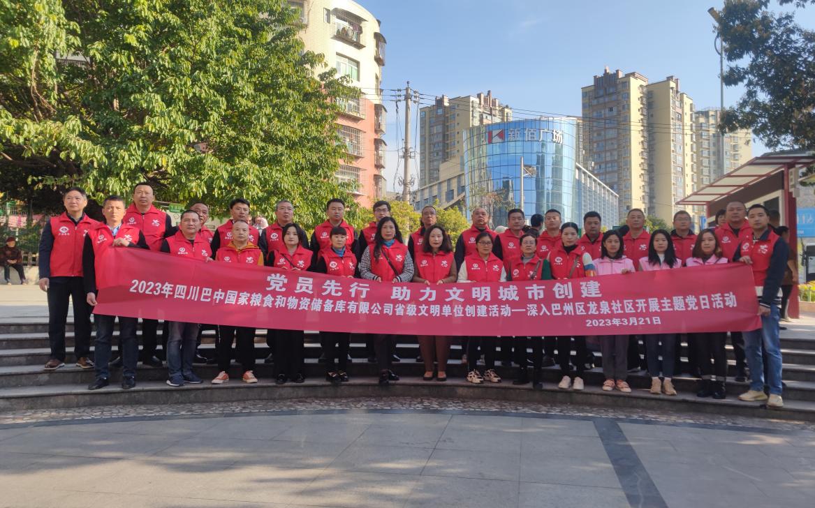 為充分發(fā)揮黨員先鋒模范作用,弘揚(yáng)志愿精神,助力全國文明城市創(chuàng)建,3月21日,糧儲(chǔ)公司黨總支走進(jìn)巴州區(qū)龍泉社區(qū)開展“黨員先行·助力文明城市創(chuàng)建”主題黨日活動(dòng)。